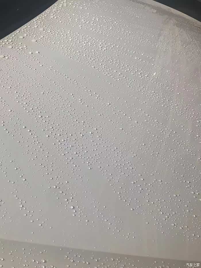水滴细小而圆润,效果貌似不错。不知道持久性如何,这蜡号称可扛半年,要是能扛两三个月,我就满意了。