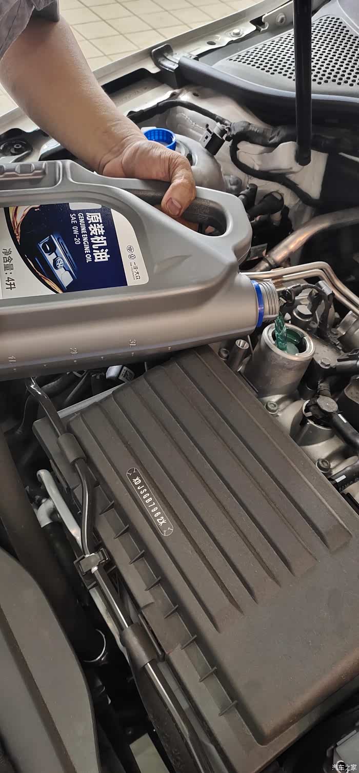 高尔夫Rline挚爱版保养过程如下。1,更换的原厂机油0W-20这是国六挚爱版机油。(师傅说下次保养换的机油是福斯机油?这个机油靠谱吗?)2,更换机油机滤+垫片3样都是免费更换的。3,保养后发动机清洁,直接拿气水枪喷喷喷。4.,汽车轮胎外观气压检查,平常都是一个人开建议都是2.3舒适性最合适。