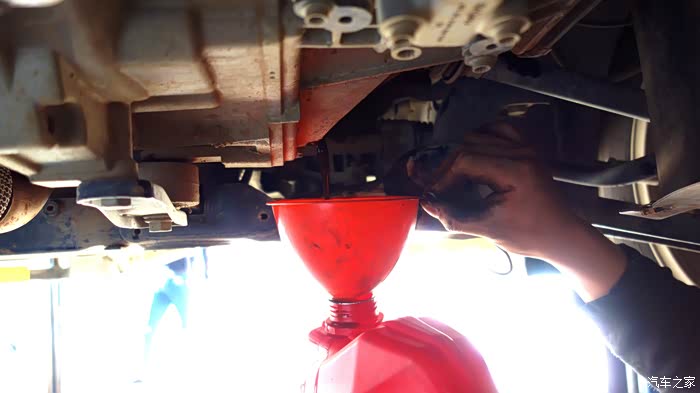 可以明显的看到旧机油出来了。