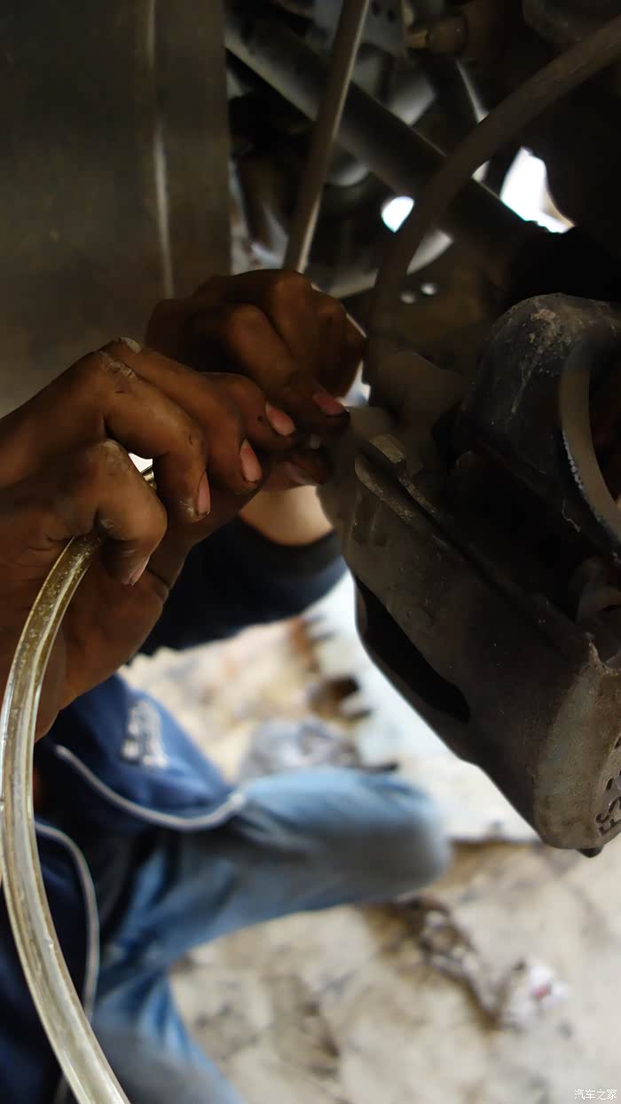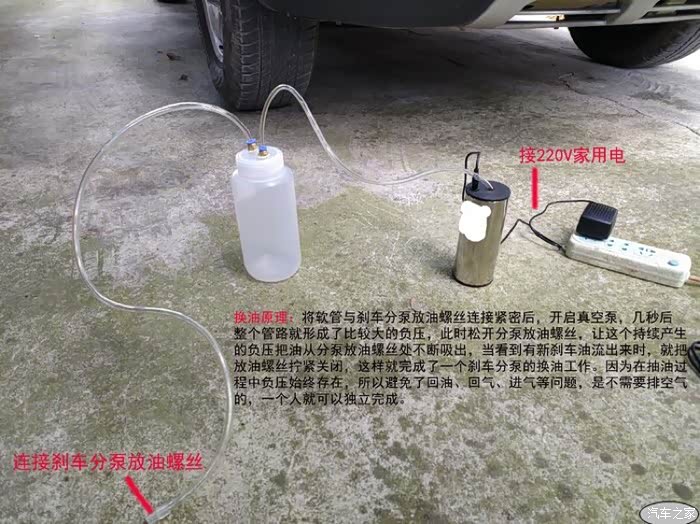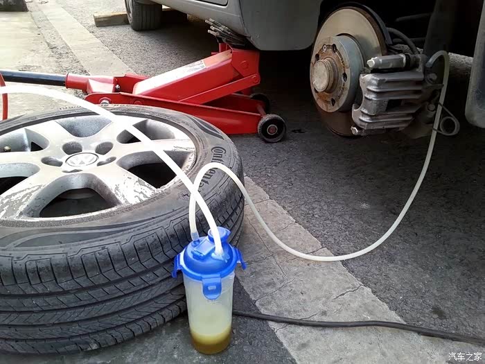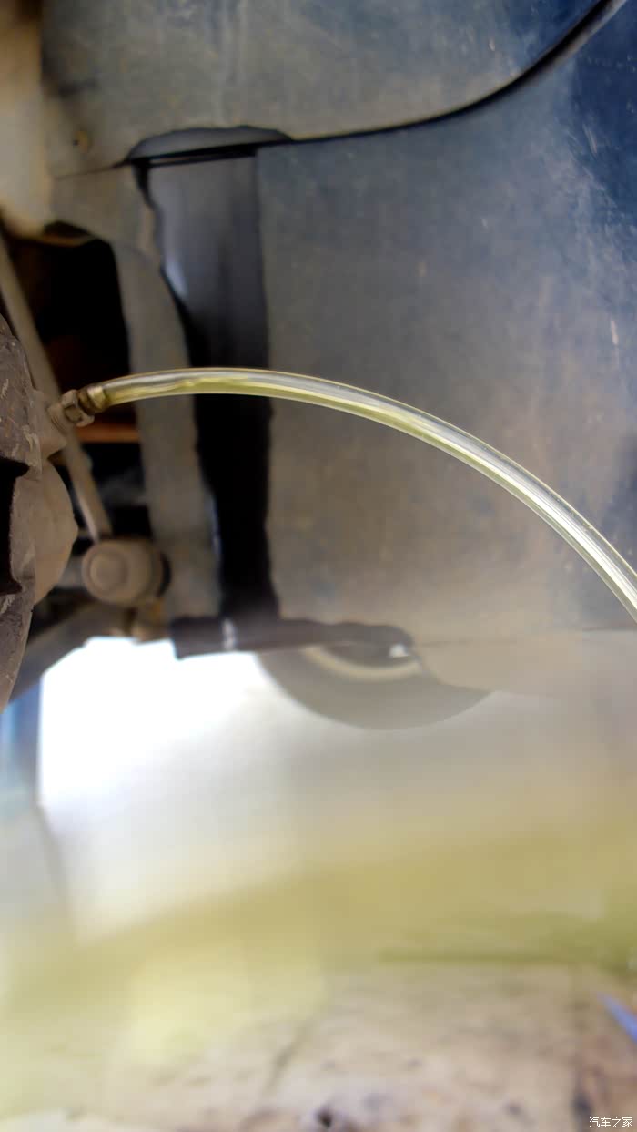 说明书上要求每2-3万公里换一次刹车油,现在6万多公里数了,是严重超标了,不要和我说不用换啊,会害死人的。刹车油在管道里是接近真空的,利用抽油机的负压吸出油,在刹车油壶端补充新油(避免空气进入),出油端的机油来新油了就停止机器,封出油端,四个轮依次按由近及远的原则进行。