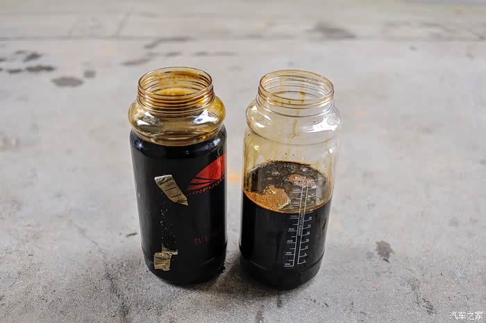 我准备了两个瓶子装废机油,一个不够用。