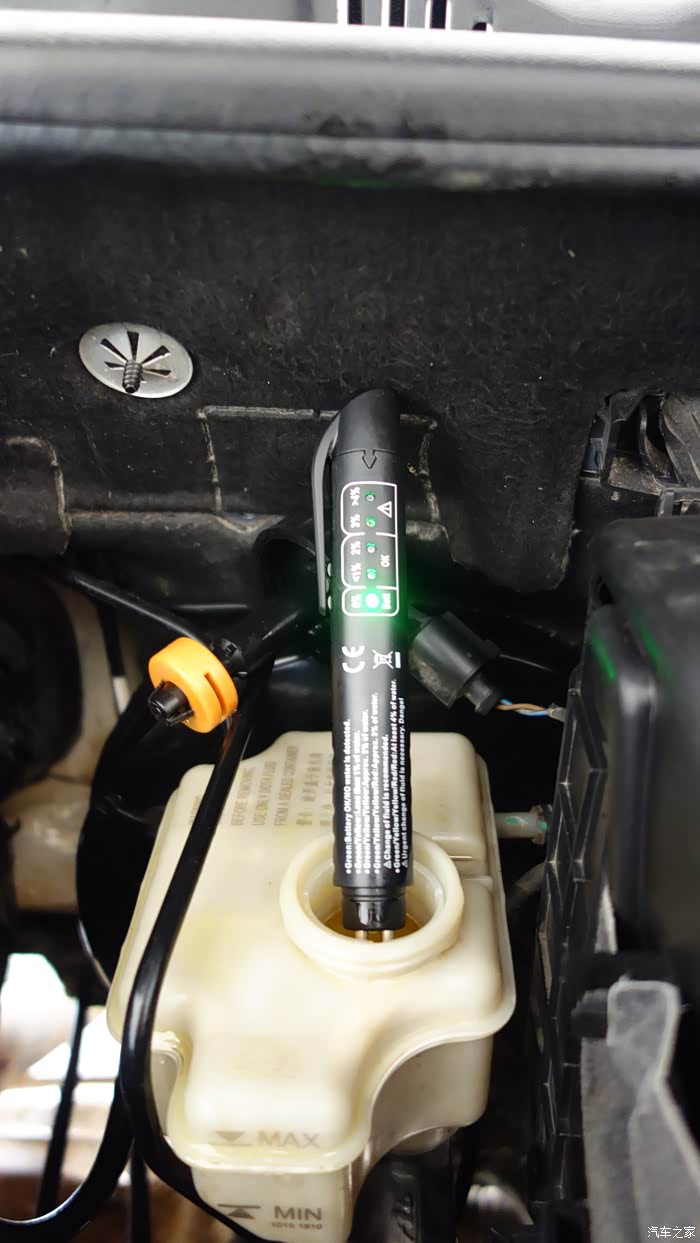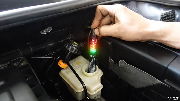 先检测旧刹车油,全亮红灯,失效了。