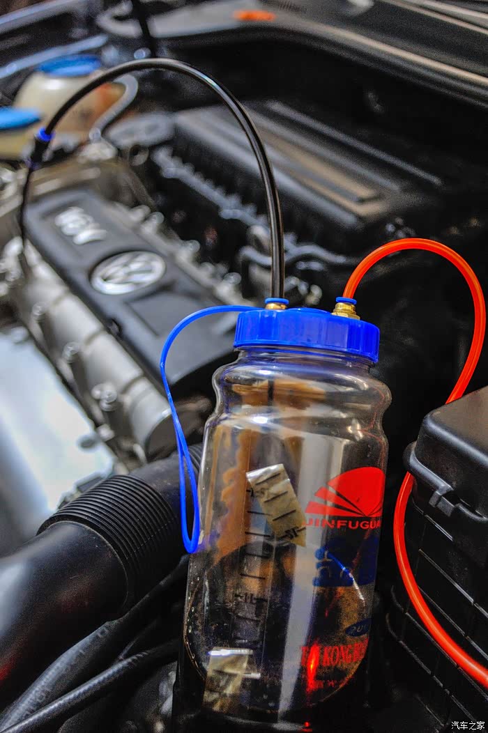 换后测试,一切正常,如果空气不干净,接抽油机直接抽5分钟。至此,刹车油更换完毕。