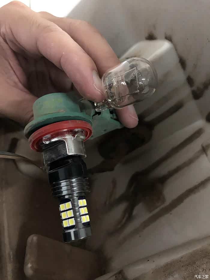两个灯泡对比一下,接口都是T20的,LED灯泡多长一些,买的时候有长有短的可以选,还有先闪三下再常亮的,我不喜欢那种,要的直接常亮款。