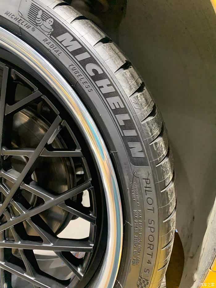 随后也就定了MMX的双片锻造,R20,9J(配245的胎宽视觉最佳),ET自己量(卷尺细线自己算)。至于轮胎,基本就没考虑其他的品牌,必须米其林,PS4S,245-35-20,同尺寸综合性能最高,了解后知道,这款胎19寸和20寸同型号的价格差的不是一丢丢,一任性二执着,也就忽略吧。