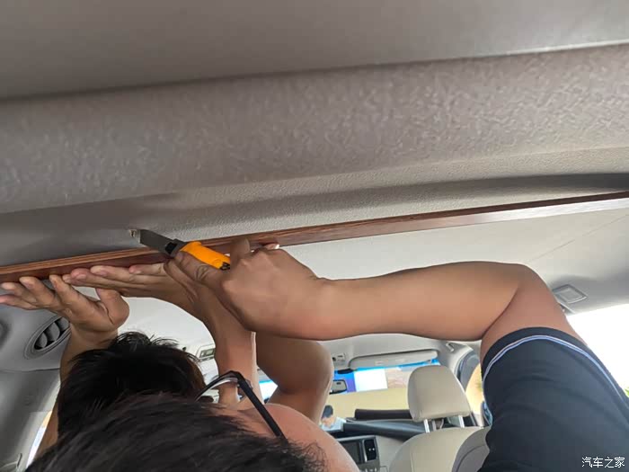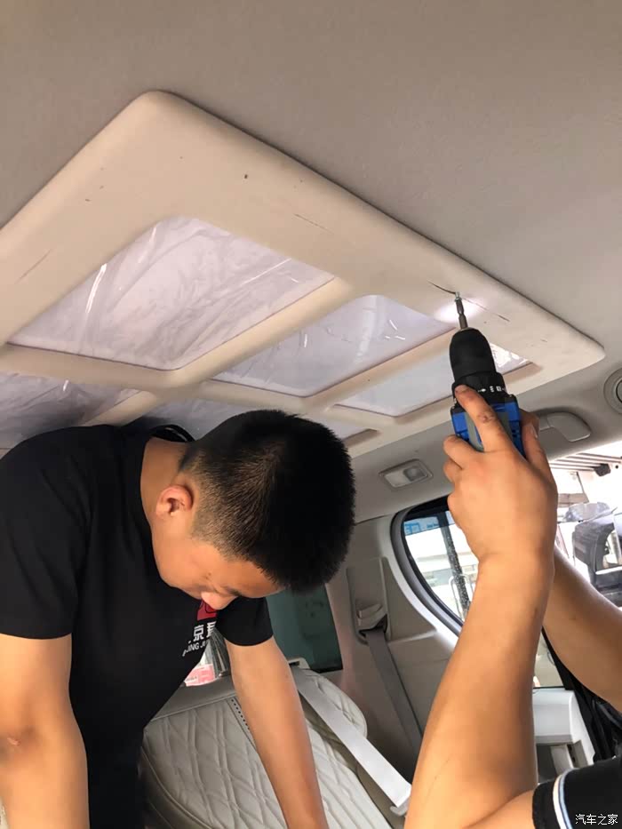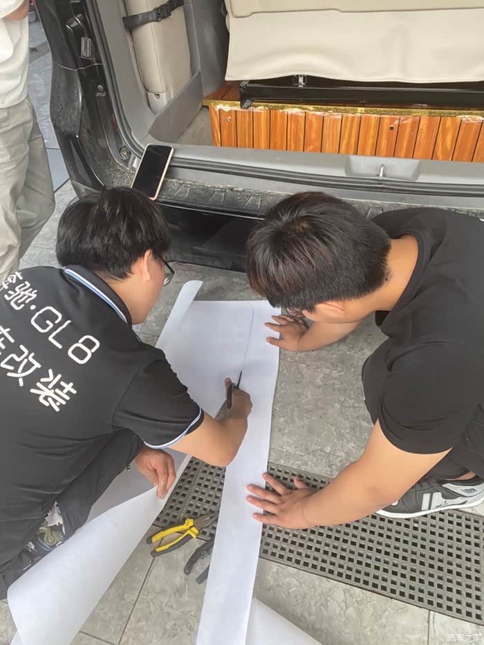 这是要铺在后备箱里面的,看师傅干活的样子太认真了