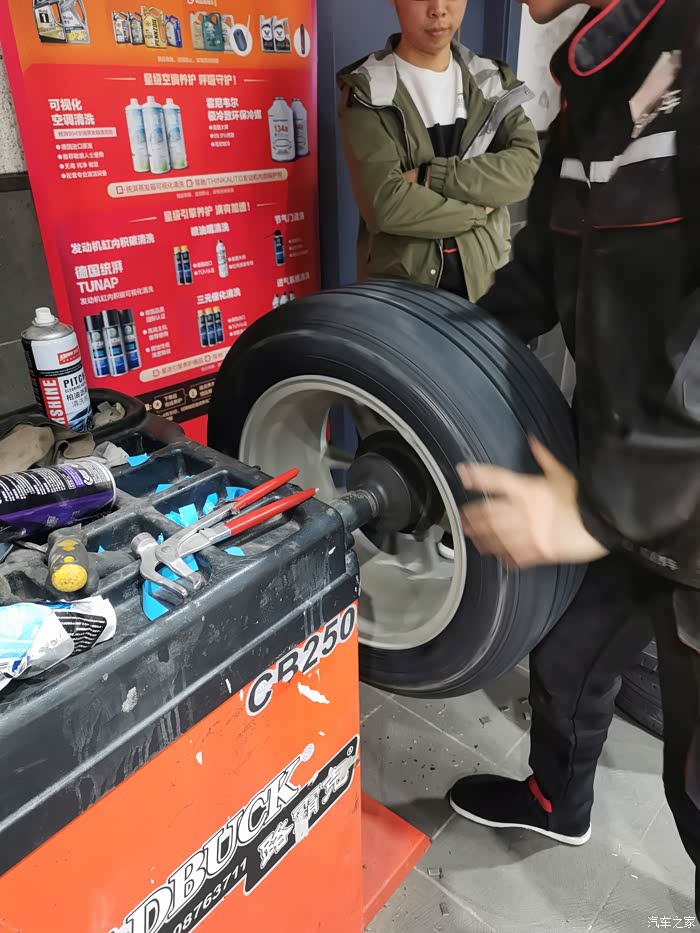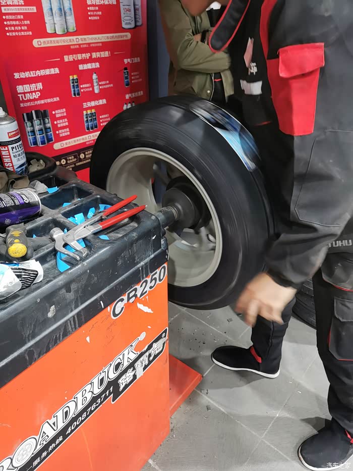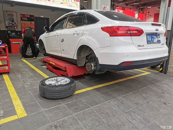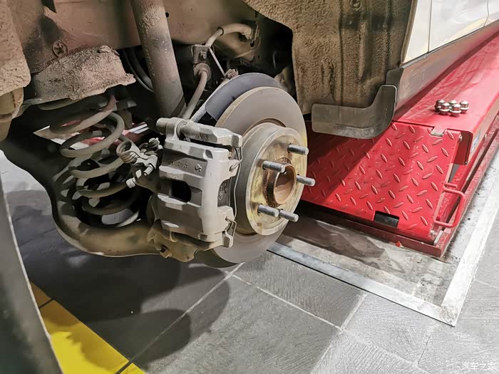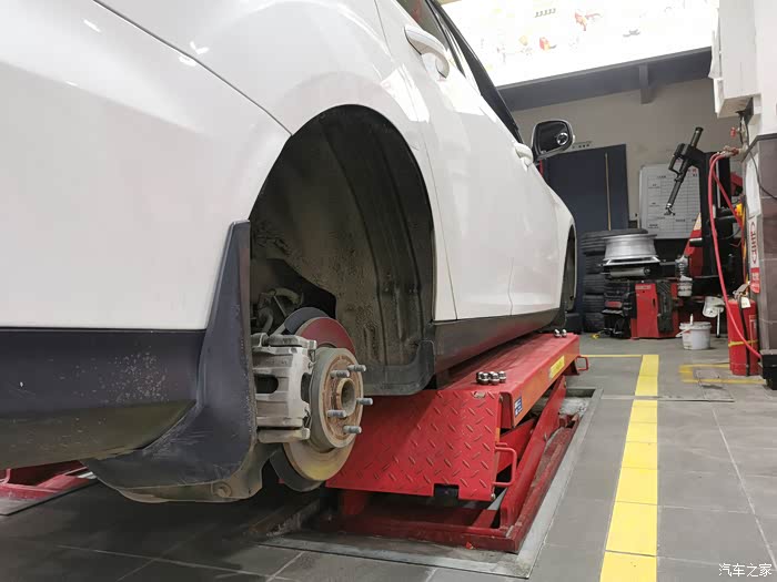 这回本来都是快到饭点的,立马飞奔去了某保养店 。直接开车上架,小哥说这后轮需要更换了。表弟也表示确实应该换了。