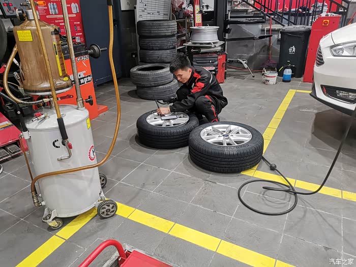 四个轮胎全部拆下,把前轮换到后轮。