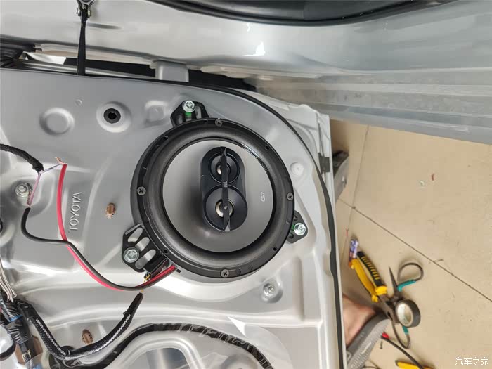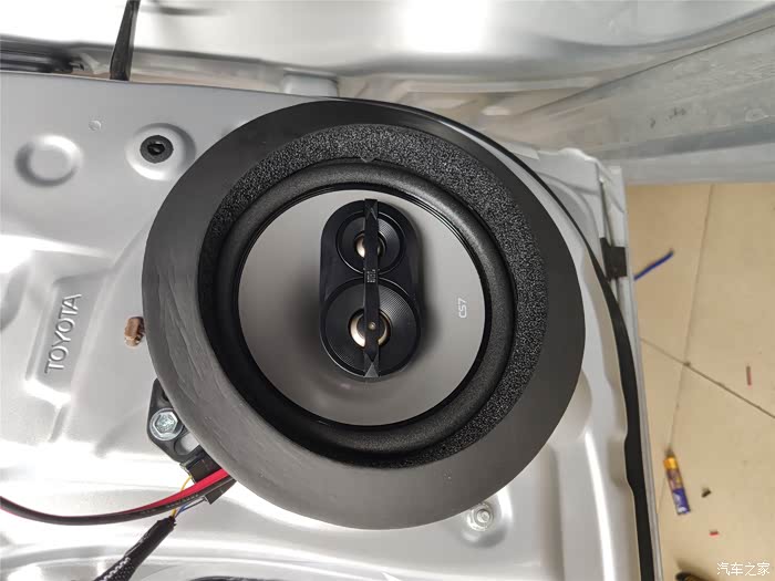 线束不合适,只能破线接了。雷凌原装的喇叭连接线是铝线来的。