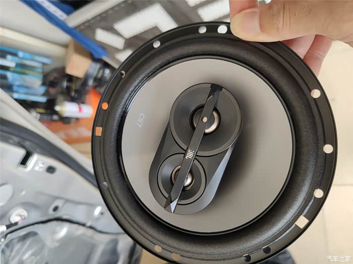 高音头装好的样子,原车也是刚好留出那么大的孔。