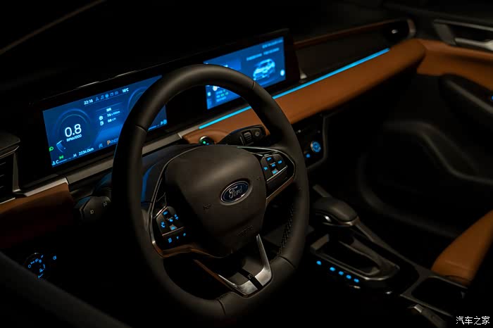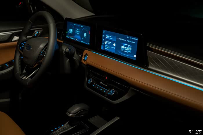 灯光配置部分,全系标配“FORD LED”一体式LED大灯,灯组内有54颗独立的光源,近光和远光可以分别达到850流明和1400流明,在夜晚及高速路况下能够实现更高的亮度和照射范围,可以有效规避路面上影响驾驶安全的异常情况。