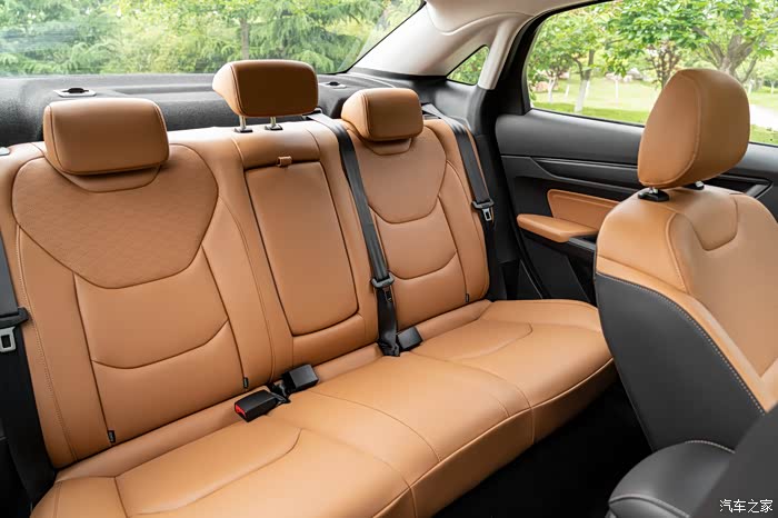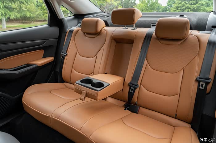 实际的乘坐空间表现算得上充裕,后排设置有中央扶手和带限位的杯架,同时在第二排头部位置做了“掏空”的处理。