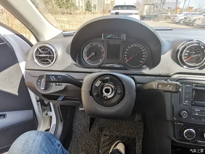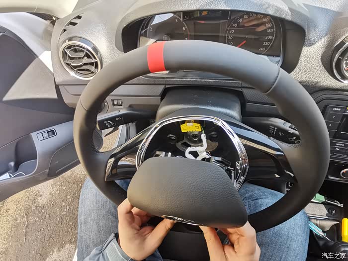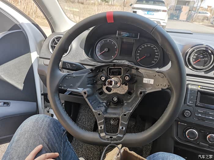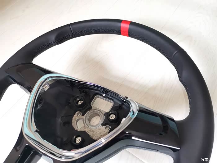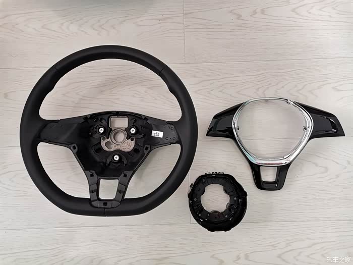 在搞配件的朋友那收了一套捷达VS7的真皮方向盘,由于是运损件价格非常便宜,皮革表面没有任何伤痕只有底座哪里有点压痕,装上后根本看不出来,配上低配无多功能按键的面框,还有VS7方向盘配套的气囊底座。