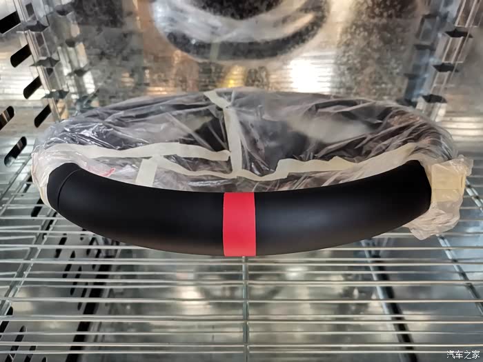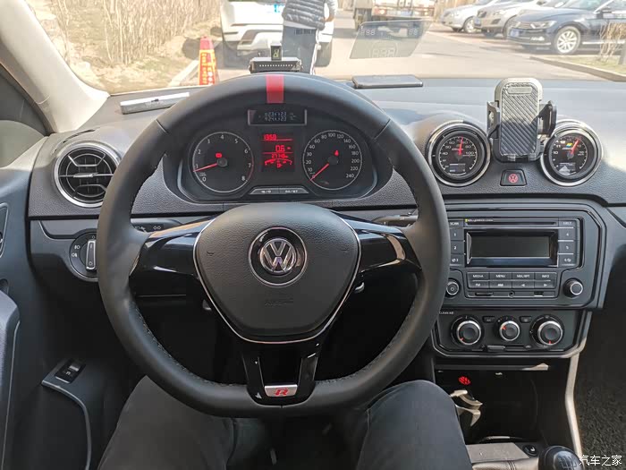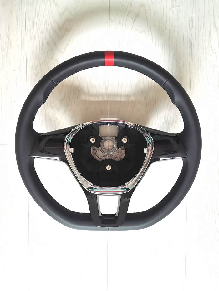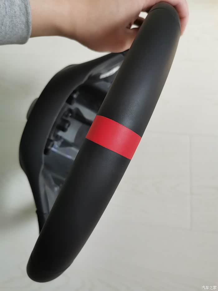 完成!效果不错,哑光磨砂的真皮面手感提升不少,最后给方向盘注入灵魂——贴上下面的R标, 完美~