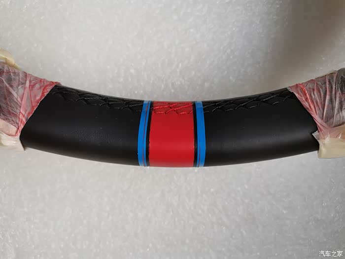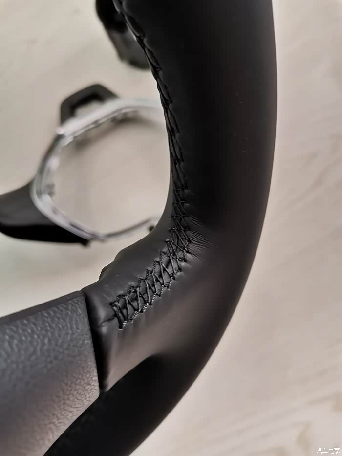 用了三年多的手缝真皮方向盘可以退休了,两侧打孔 白线 带回正标,淘宝3M胶粘贴的面框,看着效果也不错,由于是直接缝在原车塑料盘子上的,比较粗壮,贴的装饰面框后面有高度差手感不好。