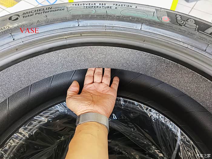 到货。第一次看到实物,真的和普通轮胎不同,自带隔音棉的