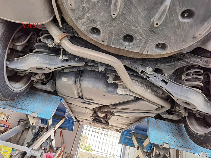 升高车辆,拆下尾段(尾鼓,消声器,消音器,末节,叫法千奇百怪)
