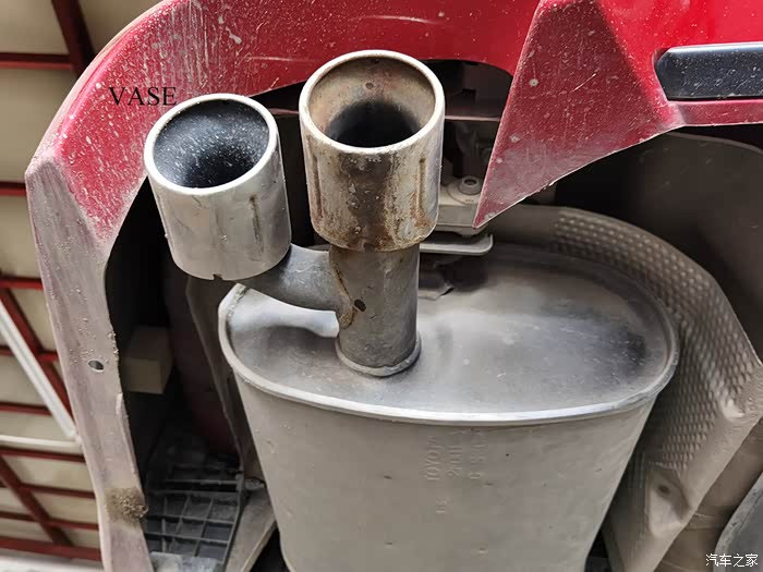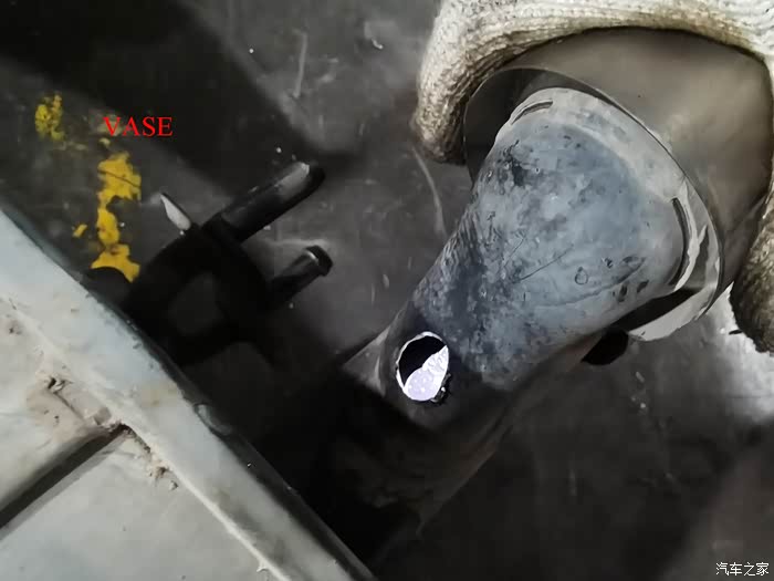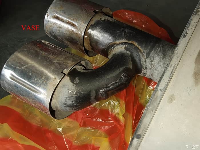 抱回汽修厂,装回。汽修厂拆装费50元。效果如图。主要的排气还是大直管排出,小弯管有少量排气。自我感觉满意