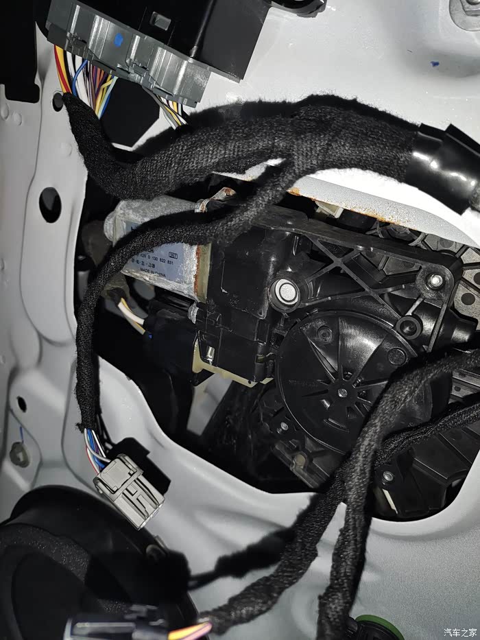 整个更换过程耗时四个小时,前门因为空间有限废了点时间,后门15分钟换一个门。整个更换过程最好不要通电(因为通电了你把门板拆了会有故障码),两前门玻璃要在关闭状态,玻璃降下你会发现连旧的限位器都拿不出来。
