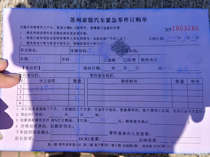 10.2021年6月,之前限位器异响上油好了一阵没多久又响了,只要天气一热就响的严重让人受不了,甚至有几次影响关门,导致右后门没关严。出保了一开始没想着去四儿子换,自己某宝上早就可以啊,有副厂的有原厂的,五花八门,抱着尝试的心态去四儿子那里问了下价格,限位器500元四个(前门126一个,后门124一个),价格还可以和某宝价格一样,但是工时费300元一个门,四个门要1200元(给打折也要1000元),这个不是明摆着抢钱嘛,四个门板卸一下,螺丝拧拧的事情。经过沟通说可以只买配件,自行安装,但是不能享受一年质保,因为之前门饰板掉漆看四儿子技师拆过门饰板,决定自己买配件回家更换。