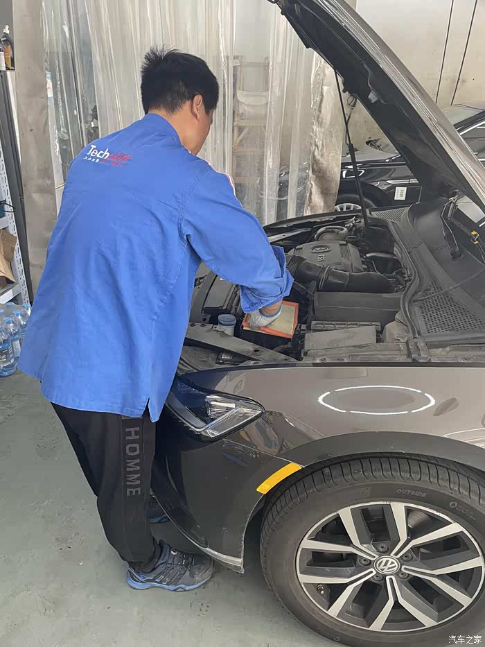 张工娴熟的技法 很快就装好了 本来想检查下空滤 结果一看脏了 也换了吧 这个活对于他来说小菜 呵呵