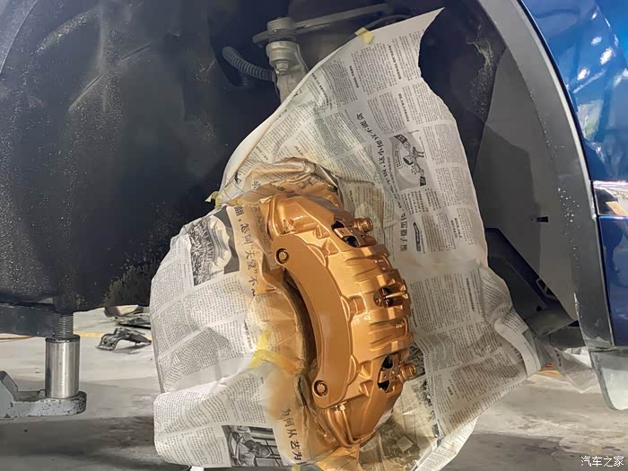 原车前六后四的卡钳目前够用、简单喷了个颜色。