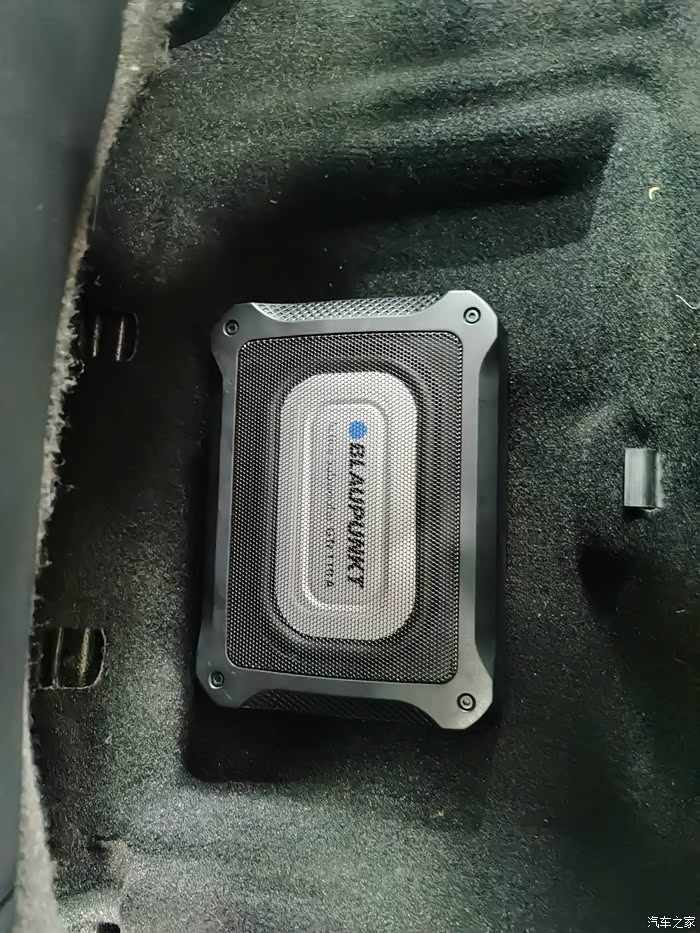 左后座地板下面是高配放低音炮的地方 可以二豪没有低音 原厂的不想要 以前的备胎炮用不了 就用了个蓝宝的 效果不错 就是对左后座的乘客不是太友好 跳舞毯 你们懂的 我车子基本上后面不坐人 平时就坐两个人
