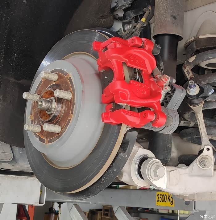 红色油漆,卡钳上的小配件,前后也不一样,后卡钳上的是一根钢条