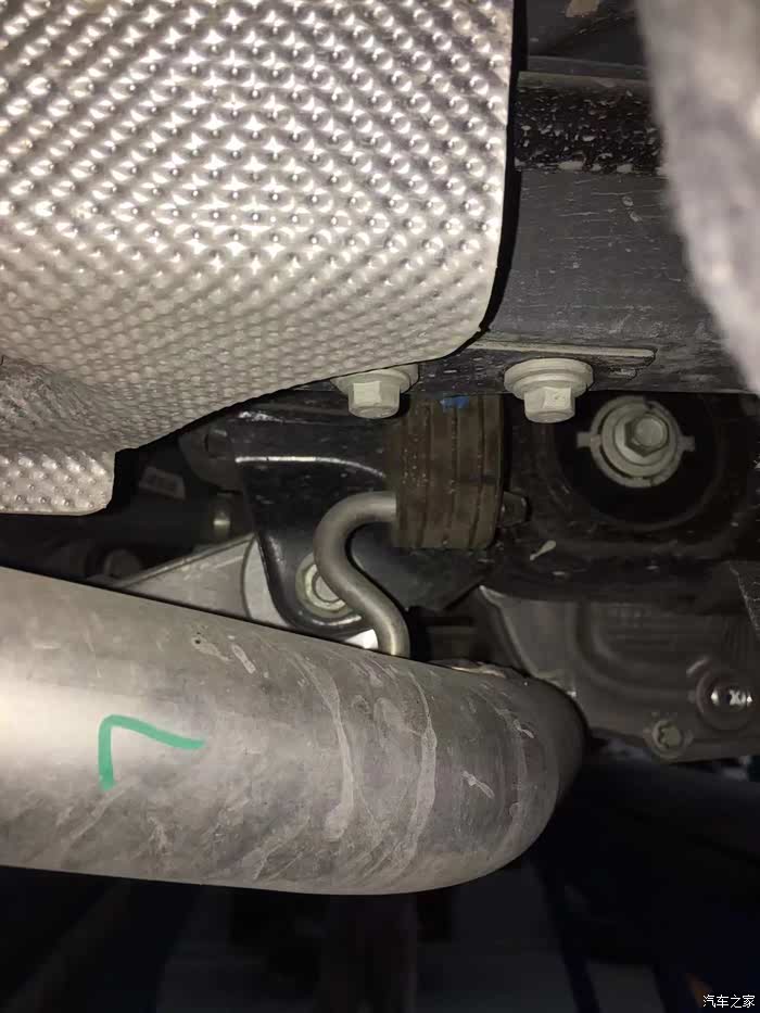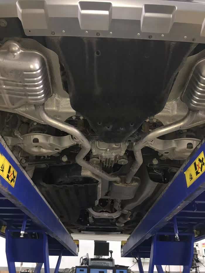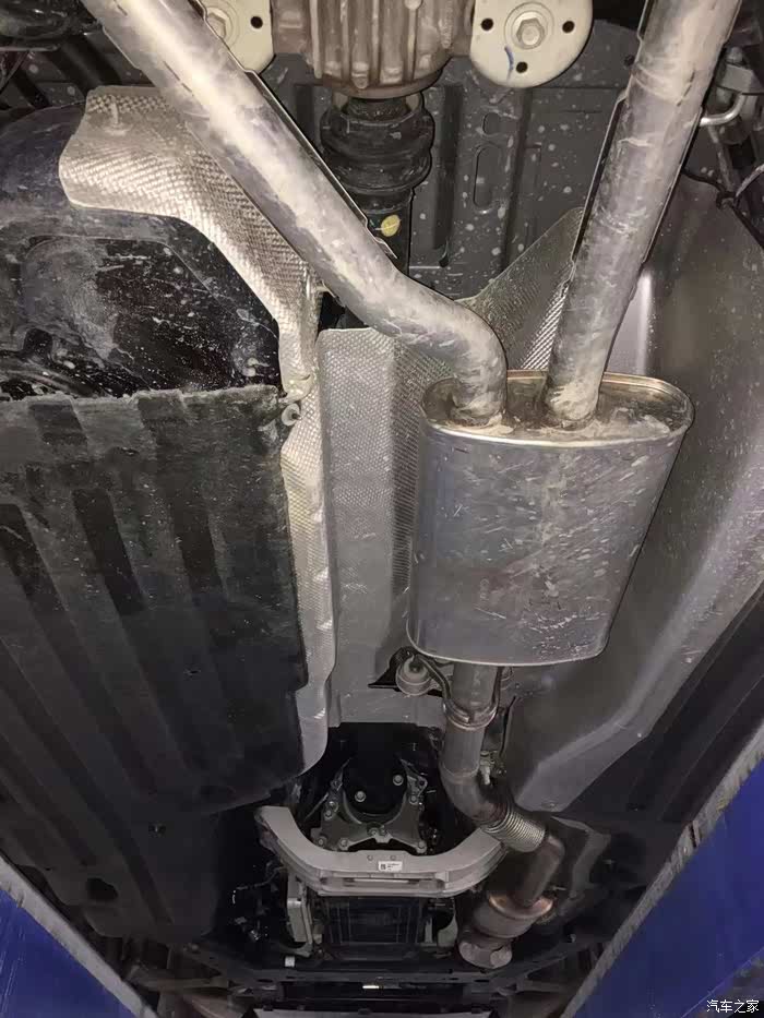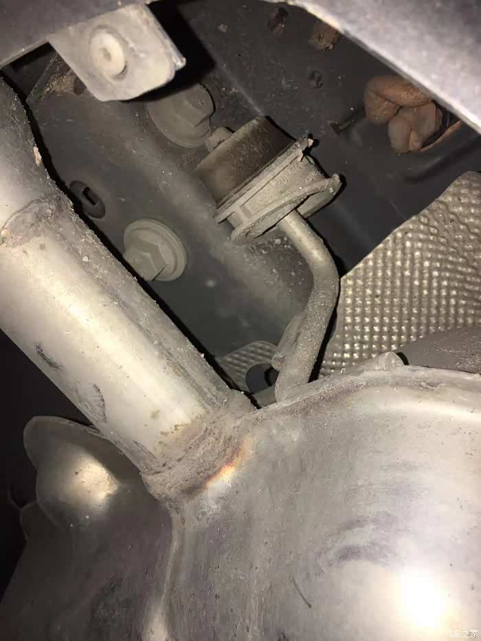 排气管上面有个橡胶材质的部件挂着,估计这是这车排气管抖动的主要原因,保养师傅说这是减振用的