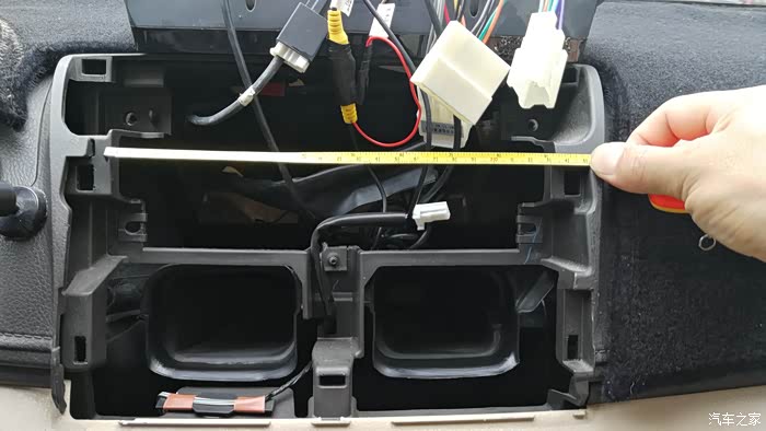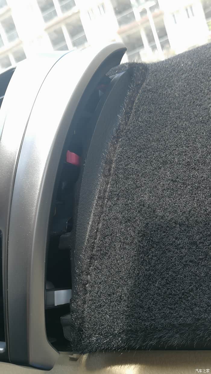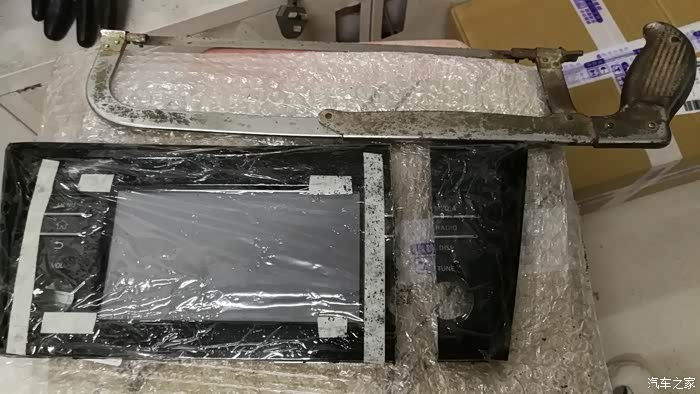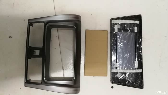 又来到车上比了比,本想就这样子安装的,发现这样大小是可以的,就是它们不在一个平面上,屏是平的,车中框是上下有弧形的,盖不了,后面翘起会有很大的缝隙。这样不好
