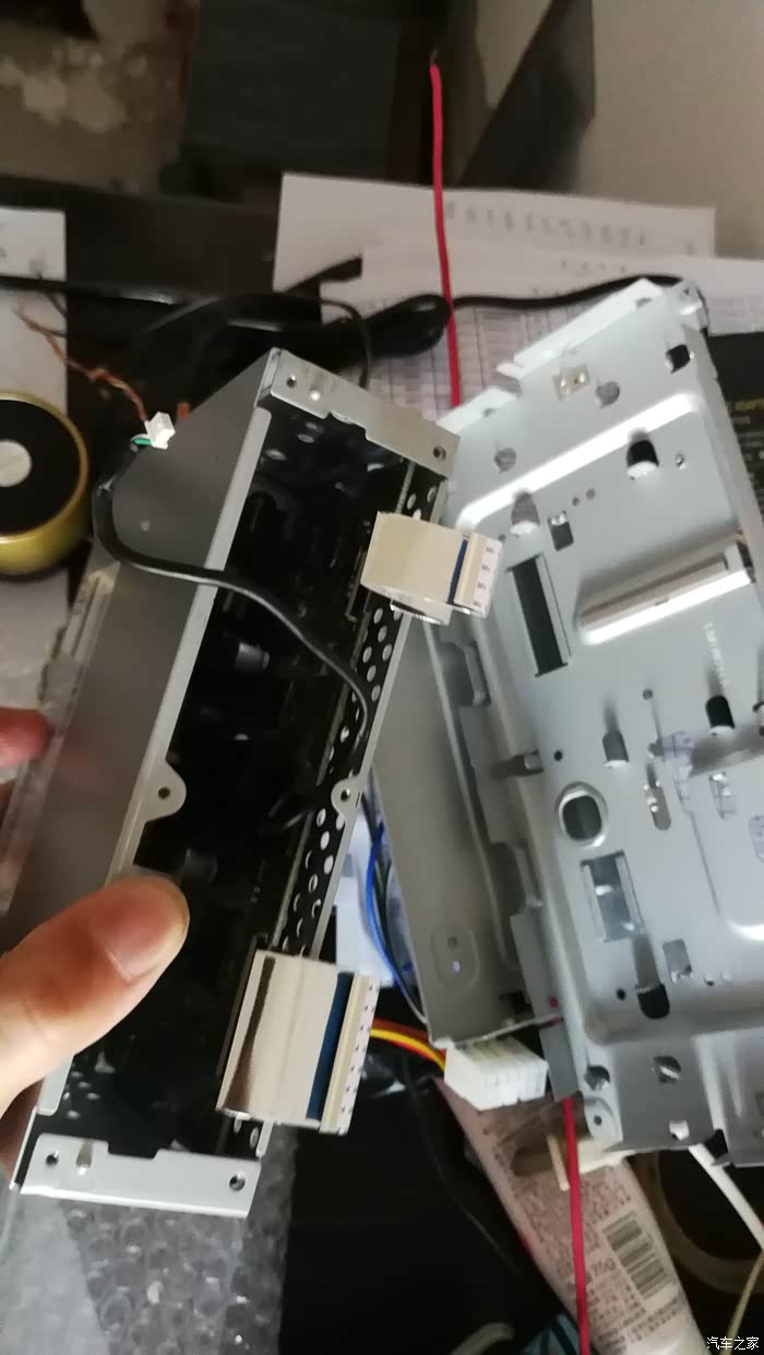 这个线带很短又脆弱,这可不能损伤了,坏了可没地方找。但是后面安装回去的时候,因为要改孔位,这个线带要横向扭转偏移了,希望这线带能承受得了才好