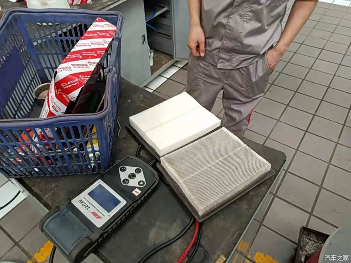 上午保养检查了一下车,除了空调以外,一切都正常,没什么问题空调制冷不好,主要是因为我没有加装防虫网,水箱和空调冷凝器散热片里面太脏了,从买车到现在,一直都是在丰田售后保养维修,所以跟车间的师傅也比较熟,后来让师傅帮我把水箱用气枪清理了一下,空调水恢复跟以前一样吹出来的风就凉了。看来平时保养车不单单是换一下机油,其他地方也得定期维护一下!