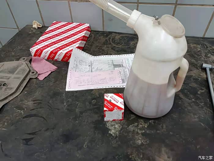这是这次保养用的机油和滤芯,保养用的是全合成零w20型号的丰田机油, 不过这几回保养都是用散装的机油,就是那种大油通 抽出来的81块钱一升