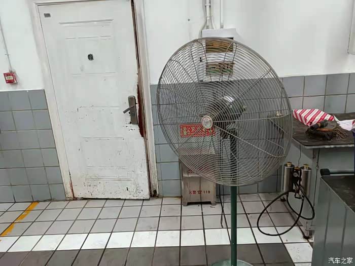 虽然车间里边有电扇,但是感觉还像蒸笼一样,很明显能看到,干活的师傅头上都是汗,修车也不容易呀