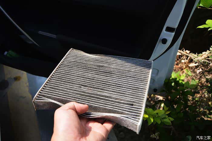 取出空调滤芯,基本上也有长达近一年时间没更换了,看上太脏了。