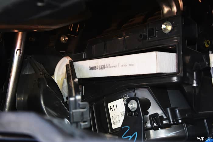 空调滤芯所处的位置在驾驶室内, 卡罗拉的位置在副驾驶位储物箱后部。首先取下右侧的缓冲尼阻。