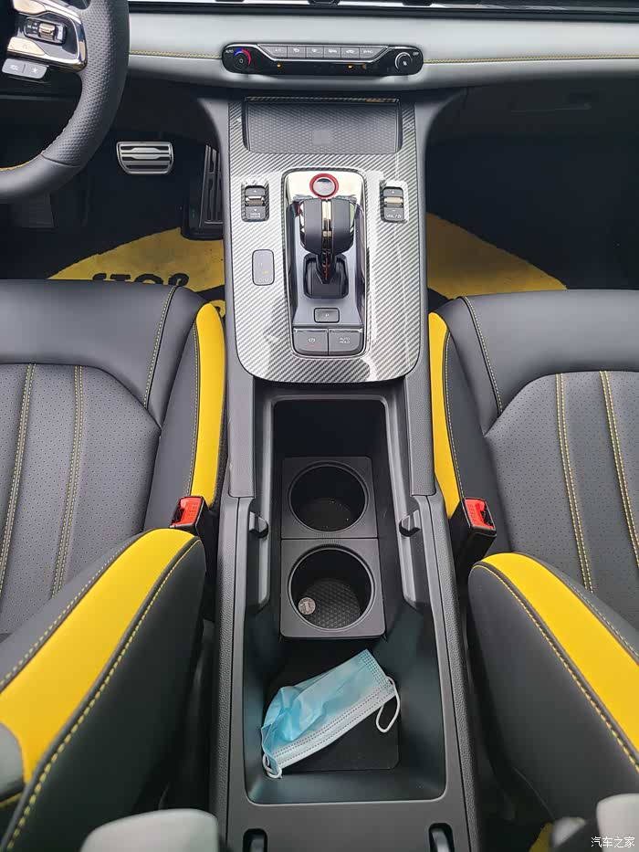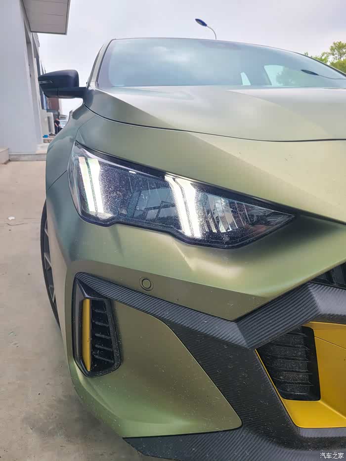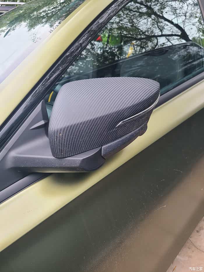 试驾车是辆小绿,黄色碳纤维部分没有黑色的那么明显,但后视镜的碳纤维设计比黑色明显很多。