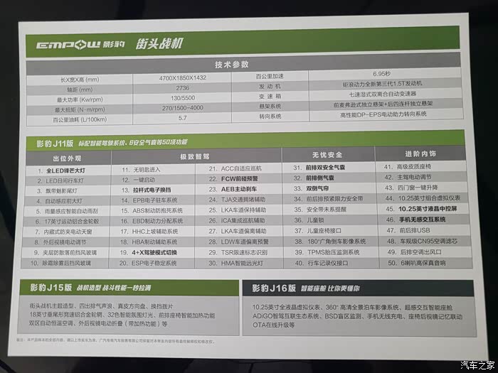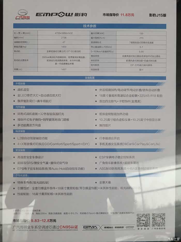 各种参数,1.5T发动机,百公里加速6.95s(官方)。