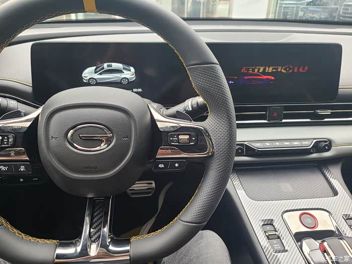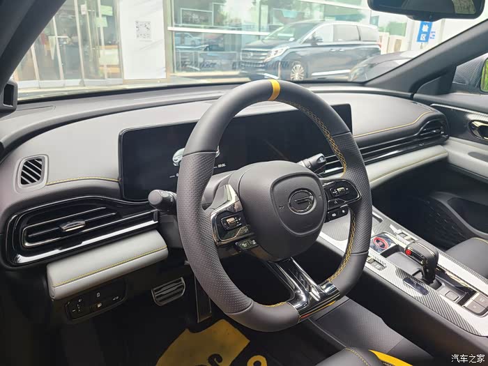 展车是辆黑色的,更加突出了黄色碳纤维部分的设计。