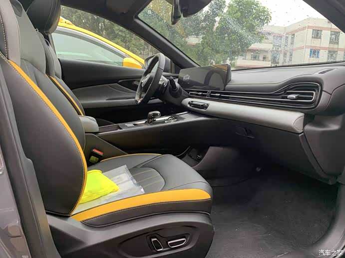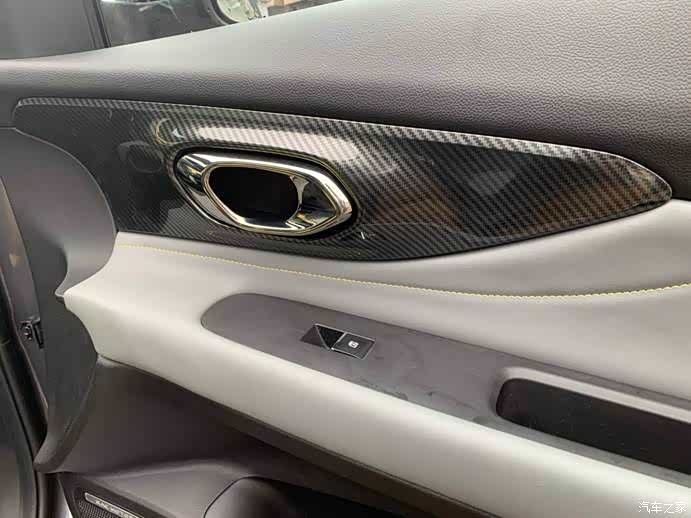 去到车内的话,首先映入眼帘的就是双液晶连屏的一个中控;看上去非常智能化,科技感满满。另外中控台上也全部都是碳纤维的一个装饰,材质上采用的也都是皮革+缝线的搭配,不论是感官还是体验感上都非常高级。