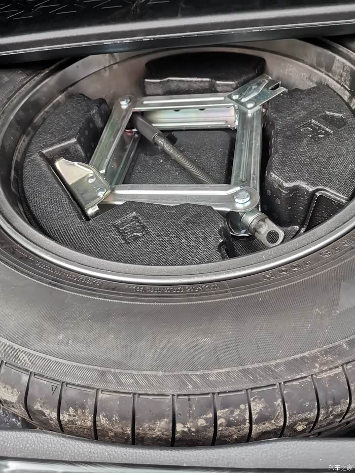 几个朋友联系出远门自驾游,新疆西藏,考虑到鸡肋的半尺寸备胎怕路上不方便,遂想换全尺寸备胎。经过测量原车轮毂轮胎直径,厚度(放倒),又测量了备胎整体空间,经过对比全尺寸备胎完全可以放下,且对后备箱地板无影响。遂决定换装全尺寸的备胎,之家车友“无心看风景”换了黑轮毂,我掏了过来一个拆下来的原车轮毂轮胎,安放后与预期效果一样好。