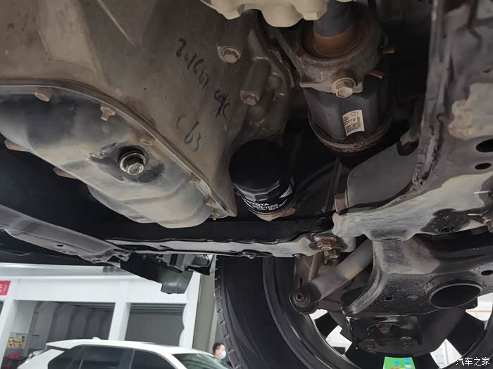 机油滤芯更换完,车子放下来加机油