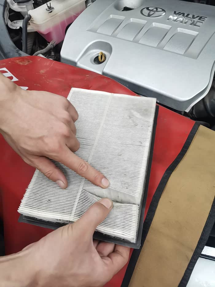 拆下空气滤芯,说是有一点脏了,要换,临时发现,额外项目,换就换吧