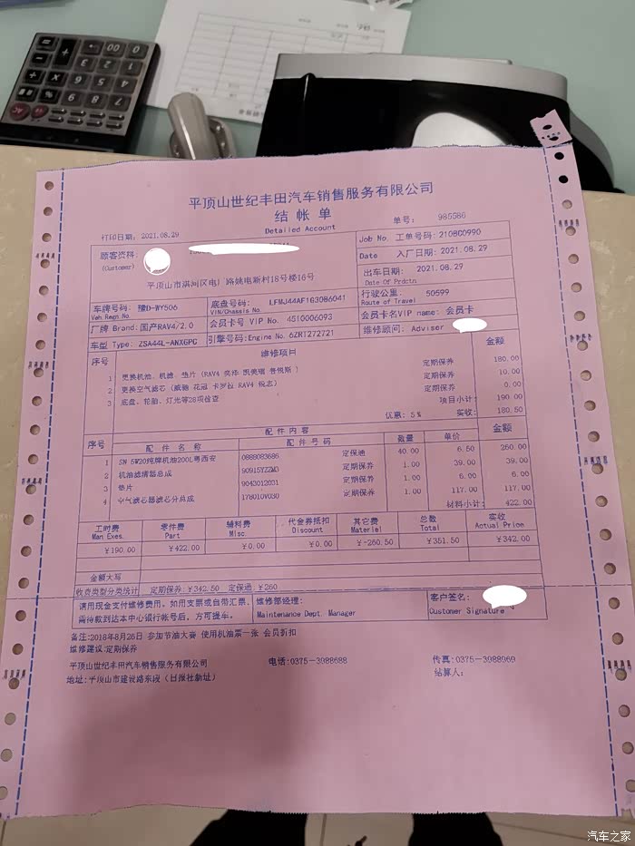 最近跑车稍微多一些,这一次8个月跑了1万公里,还是不少的,5年5万公里,基本上平均一年1万公里,老百姓的日常生活满足了,车该用就用,生活水平提高了,幸福感满满的,这就是小百姓的日常。下雨天还是按计划进4S店保养,还行,居然算是一个小保养,店里还是说不建议跑1万公里保养,这个也不能太讲原则了,不知道各位老铁们都是怎么个想法,也欢迎交流。保养车还是看图说话吧。