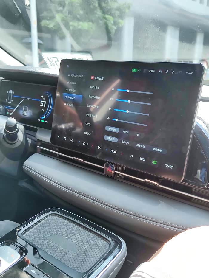 驾控篇:兴冲冲的坐上了试驾车,门店周边的路况车流量还是比较密集,大致体验了下加速变道、直线加速、急速刹停等,加速变道不会有顿挫感很丝滑,说明底盘调教做的不错,直线加速据顾问介绍SPLUS有6.8秒百公里表现,受限于路况我体验了直线加速响应方面还是挺快的,对比我的S也有不小提升,急速刹停也很稳并且反应及时,采用了博世的制动系统,路面驾驶仪表盘也有周边车辆及路人的模拟图显示,ACC识别还是挺精准的,操控台上和我的S对比最大的区别是在档把上,S用的是飞机档把,S Plus则是用了路虎极光同款的旋钮式档,换挡上更简洁直接