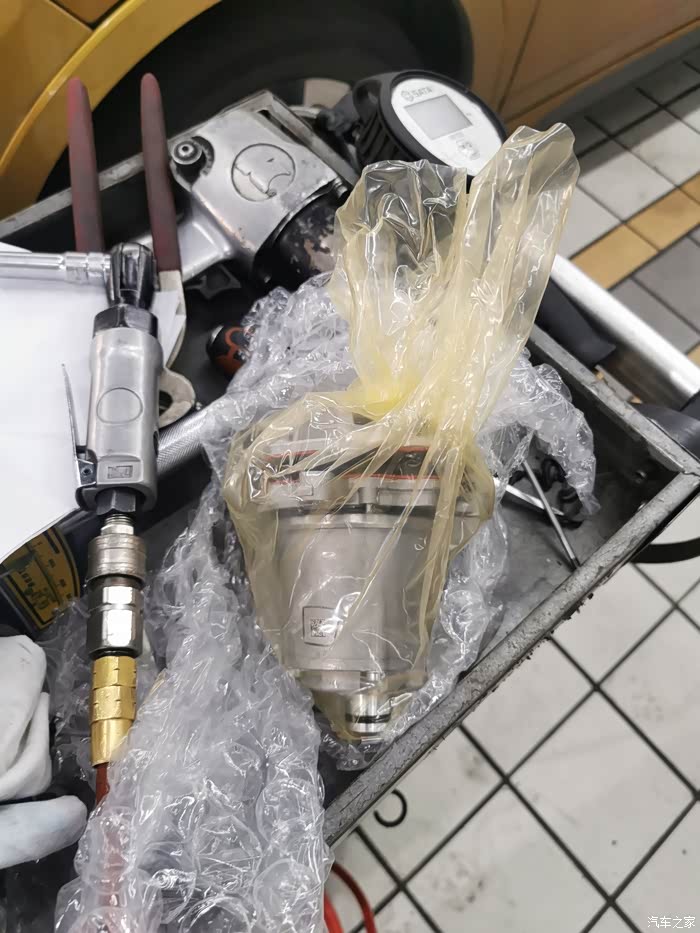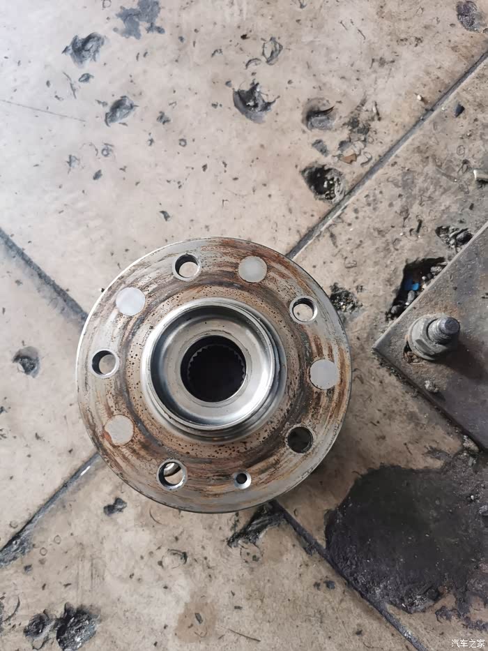8月18日,折腾了一周心力交瘁,我是个固执的人,因为我前轮刚好在保养那天有撞过水坑,我又上网查资料,还是想把轴承换一下试试,开车几十公里跑到广州汽配城淘了一个原厂的前轮轴承,回来后又找了一个修理厂更换,拆这个轴承真的非常费时费力,怪不得4S店师傅都不愿拆轴承出来检查,本来以为换了轴承应该就能解决问题,是我太天真了,换上以后一样,实践证明真的不关轴承的事,拆出来的轴承转动也没有异响,安装的师傅说高速度过坑除了轴承外,还有可能导致摆臂变形或者悬挂损坏,本来是打算继续预约去4S店做进一步检查,后来又想,估计4S店也不会认真帮我排查,只会浪费更多的时间,我不想等了,最坏的情况就是自己再去买件替换测试排除问题,于是我又打算去淘避震杆和机爪垫(排除左前轮轴承问题)