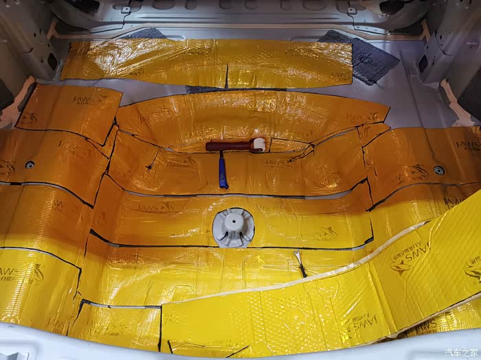 8月14日一天都宅在家里在网上找解决方法,又怀疑是隔音共振问题,于是8月15日在佛山找了一家做了25年隔音的老店,搞了后备箱,后排座椅底部,后轮翼子板内侧这三个位置的隔音,材料用金鲨止震板和隔音白棉,分布式贴,不过没有上低频王材料,然后空腔位置打发泡剂填充,(补充一下,止震板不能满贴,要分布式留一点空隙,否则全车共振会更厉害,早年油车做隔音时候吃过亏,最后全部材料撕掉还原才恢复正常)