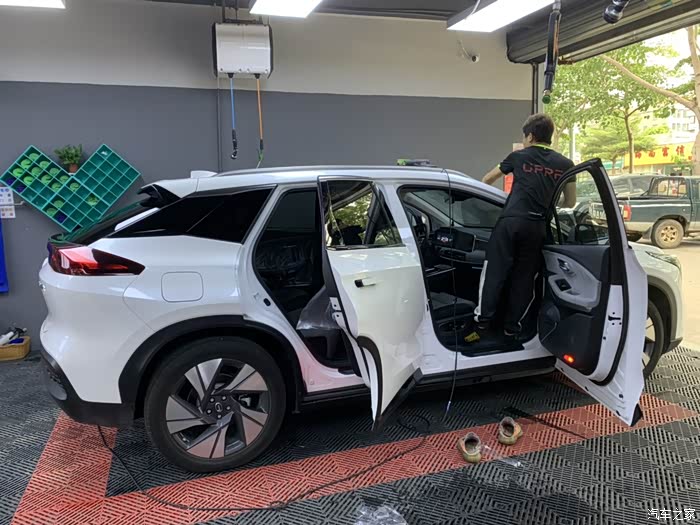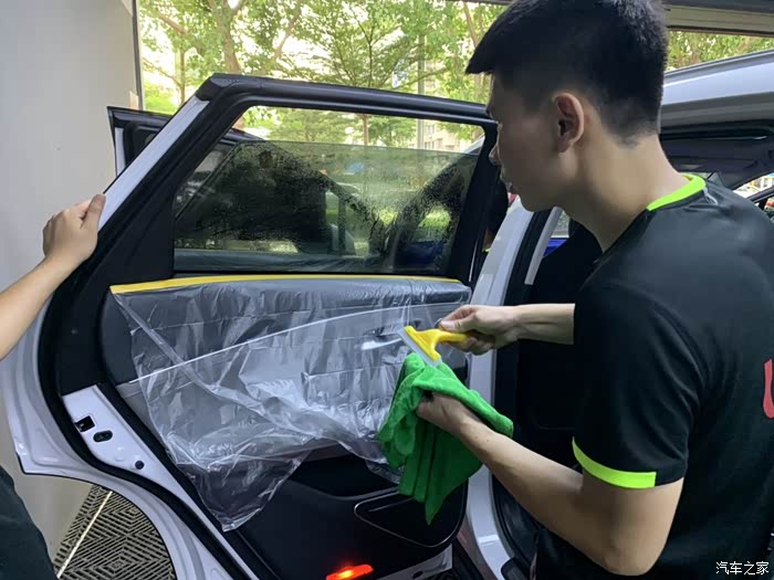 价格谈好了,全车贴,进场,关门,除尘,不过那时候接了个电话,没拍到画面