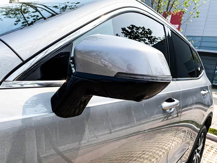 双拼色后视镜看上去很时尚,集成了并线辅助功能,并线时更加安全