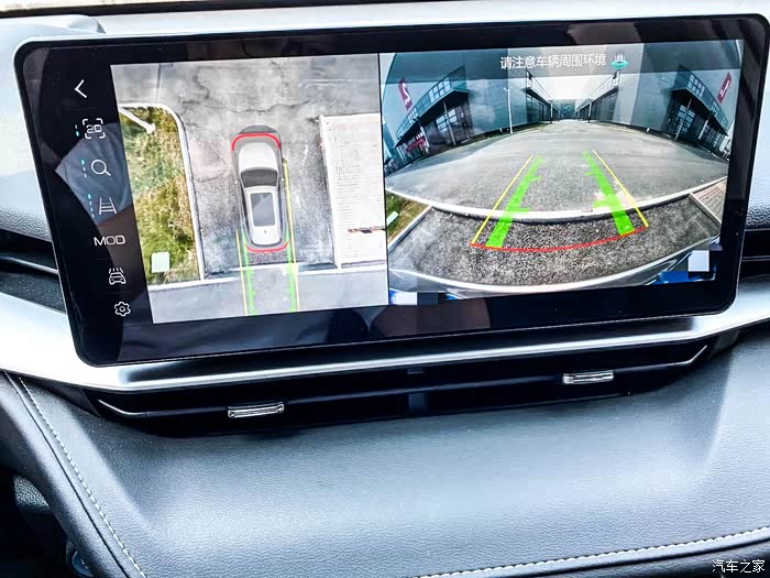 360全景影像功能,车子周边看的很清楚吧,随动式倒车辅助线能够预测路线
